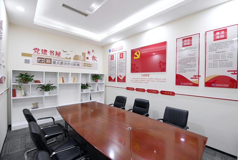 城發(fā)公司黨支部以“規(guī)范、節(jié)儉、實用”為目標,對原會議室進行了科學設計和規(guī)劃,滿足公司黨員職工學習、會議需要,并配置書架存放多種類黨建書籍、管理書籍以及日常學習活動資料,全方位為黨建工作開展活動創(chuàng)造條件和溫馨的環(huán)境,實現(xiàn)了“一室多用”的效果。