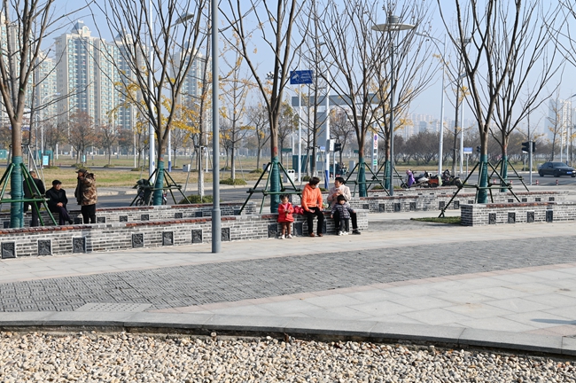 此次針對(duì)蘇州公園東北角處進(jìn)行重新栽植18株20CM的彩葉樹種的櫸樹和日本矮麥冬進(jìn)行栽植,同時(shí)為迎合蘇州街西入口整體景觀效果相協(xié)調(diào),增加更具“蘇式”韻味景觀長條形式的坐凳滿足周圍居民生活休閑。