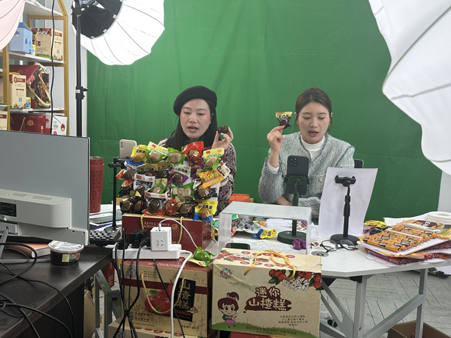 當(dāng)天,電商產(chǎn)業(yè)園內(nèi)的“直播大棚”人氣爆棚。主播們?cè)阽R頭前與消費(fèi)者展開(kāi)互動(dòng),充滿激情地介紹各類商品,通過(guò)生動(dòng)的語(yǔ)言和直觀的展示,將商品的特點(diǎn)和優(yōu)勢(shì)傳達(dá)給觀眾,引導(dǎo)他們進(jìn)行購(gòu)買(mǎi),主播們還以抽獎(jiǎng)、送禮等方式增加直播的趣味和互動(dòng),吸引更多觀眾的參與。