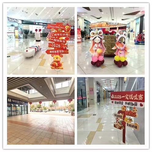 公司精心策劃,大門粘貼的精美窗花、高掛的大小燈籠、增設(shè)網(wǎng)紅背景墻、擺放拍照打卡立柱……鄰里中心裝飾一新,各種充滿年味的布置為即將到來的新春佳節(jié)增添了濃濃的喜慶氛圍。