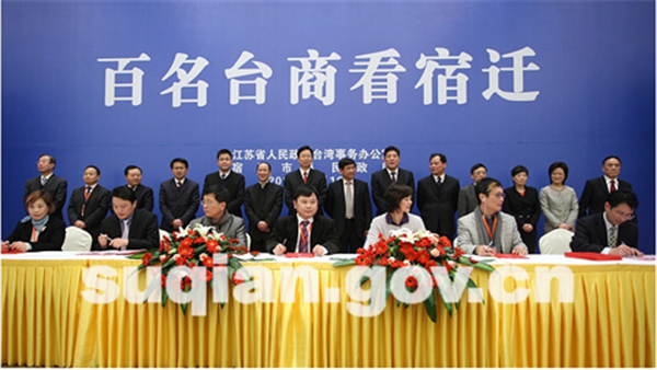 在宿遷投資環(huán)境推介會上還隆重舉行了項目簽約儀式。經(jīng)過前期深入溝通和洽談,此次“百名臺商看宿遷”活動取得了一批可喜的項目合作成果,宿豫區(qū)、宿城區(qū)、宿遷經(jīng)濟(jì)開發(fā)區(qū)和市有關(guān)部門與臺灣島內(nèi)企業(yè)共達(dá)成13個項目投資意向,協(xié)議總投資達(dá)114.4億元,涉及新能源、新材料、軟件服務(wù)外包、機(jī)械制造、環(huán)保科技、電子、食品等多個領(lǐng)域。